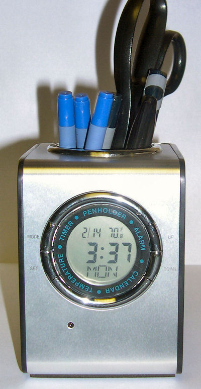 Clock/Thermomter/Pencil holder camera. Would you ever suspect that you were being watched?